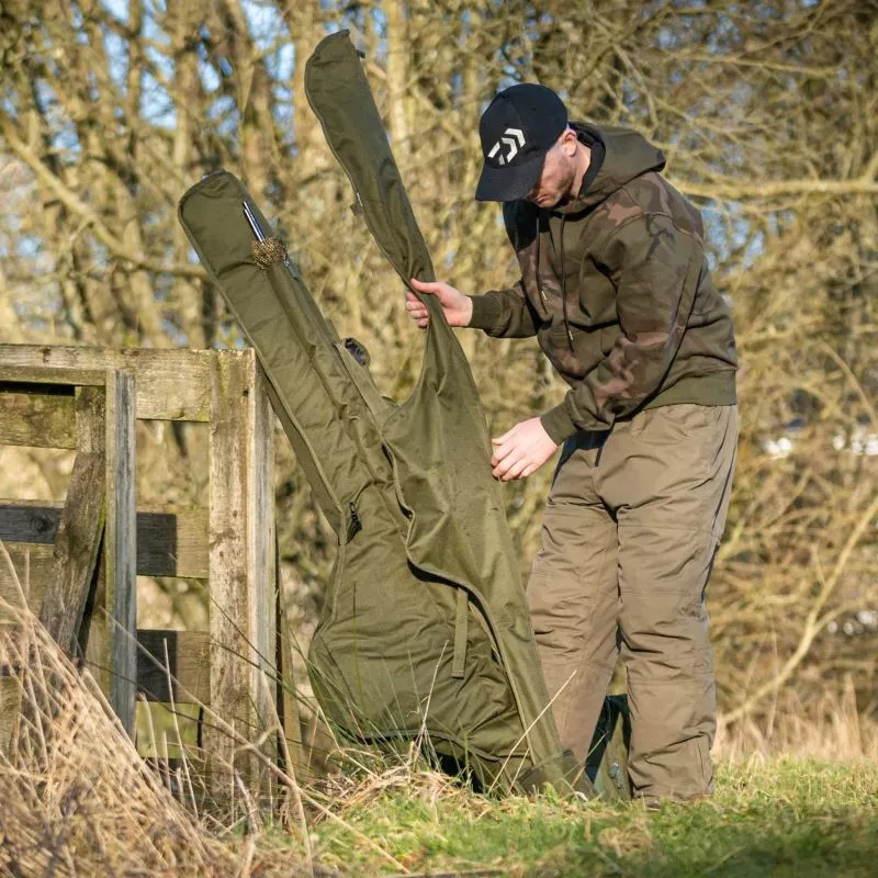 Daiwa Black Widow 3 Rod Holdalls, a great cost effective transport solution for 1 10ft, or 12ft 3 rod setup. Manufactured from a tough 500D polyester material, and fully lined inside. There’s also an external bankstick pocket to keep your bankware separate. Â