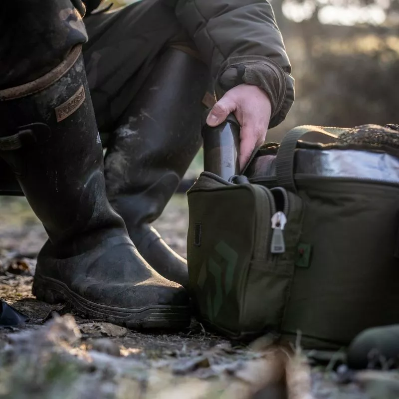 Diawa’s Black Widow Large Cool Bait Bag, brought to market by popular demand by anglers looking for more storage for longer sessions. Featuring a fully lined main compartment, plus a large front zipped pocket and finished with grab handles and a shoulder strap.