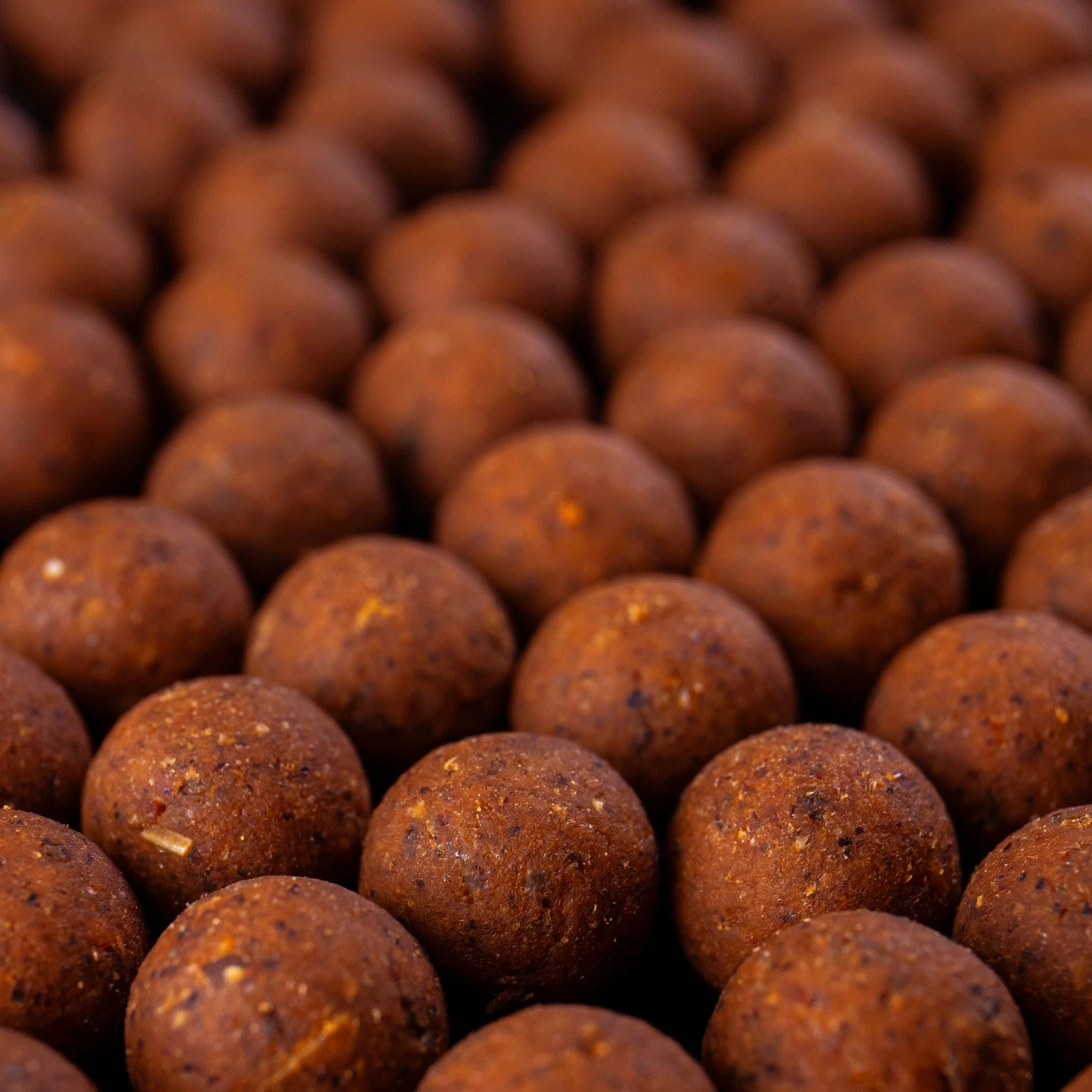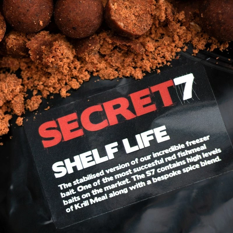 DNA Baits Secret 7 Shelf Life Boilies, fishmeal based boilies that stand head and shoulders above the competition. Manufactured from the highest grade fishmeal sources, including air dried LT94 and pre-digested CPSP90 complimented by premium Krill meal. This base mix is then improved even further with a balanced blend of 7 spices giving them an appealing smooth peach and sweet orange aroma. Finished with a natural colouring that gives them the distinctive red tinge. Â