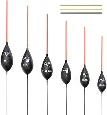 - The classic shape is tried, tested and popular, making these a really versatile pattern, ideal for deep lakes or slow-moving rivers. Perfectly balanced and the long carbon stem offers good stability. Sizes 0.6g to 0.8g come with four 1mm diameter tips and 1.0g to 2.0g sizes come with four 1.25mm diameter tips (1 black, 1 red, 1 orange, 1 yellow).