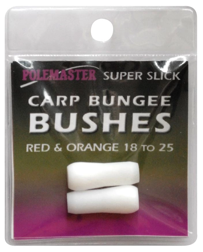 These super slick Bungee Bushes are shaped to match up with Polemaster Bungee Connectors. Made from 100% pure white PTFE they are super slick improving stretch and recovery of pole elastic and reducing elastic wear. Available in x4 sizes and there are x2 per pack