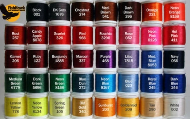 Fishhawk rod winding threads, specifically designed for rod building. Available in sizes A and D and in many colour options it also makes an excellent choice for wrapping lure, jigs and tying bucktails.