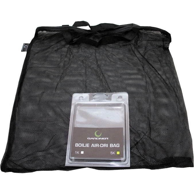 The Gardner Air Dri Bag in 5kg is a convenient way to dry and store baits on the move. Keeps boilies dry and fresh and out of the way of rodents. Hang in a tree or bivvy and shift baits around daily to allow air circulation. Tough zips, strengthened handles and reinforced webbing to prevent stretching or loss of shape. Beware of inferior imitations.Â