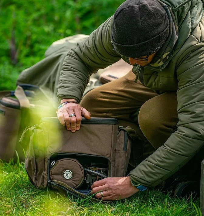 Customised luggage for storing and housing your essential brew kit and dining wear on the bank. With a generous central compartment that will comfortable take a kettle and a Compac tea set. There’s also a removable divider so you can keep some biscuits, or food packets/tins separate and some zipped internal pockets to take some cutlery. On the exterior you get two additional pockets, one of which will comfortably hold a ‘500’ size gas canister plus stove.   Â