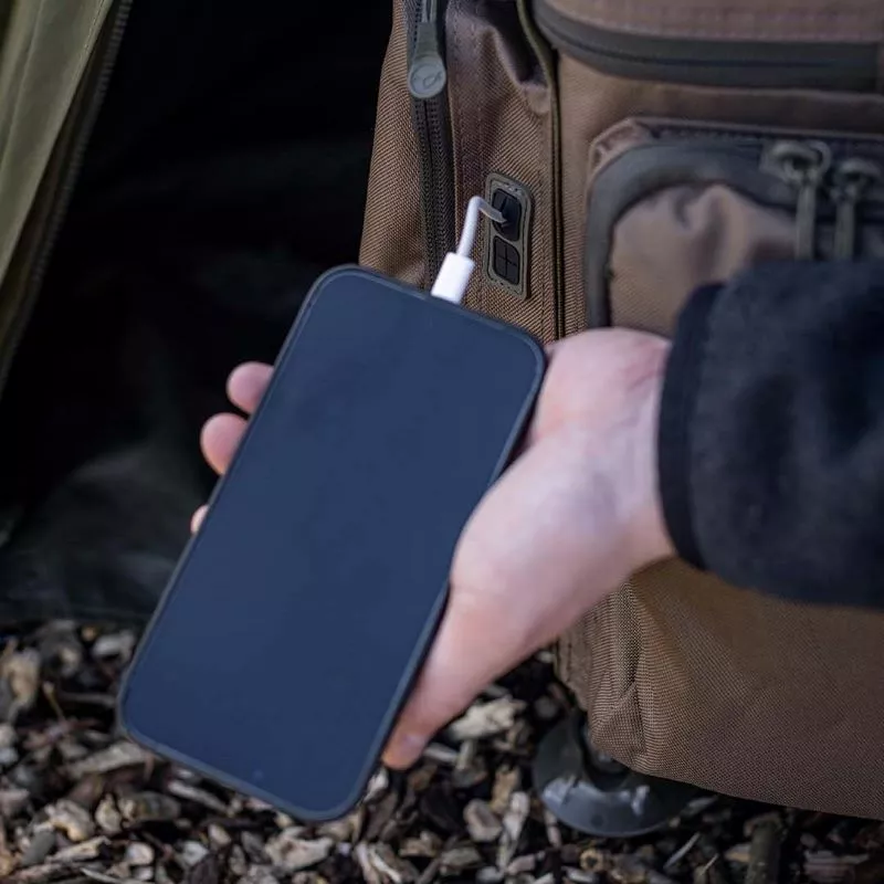 - Two pockets with moulded cable ports
