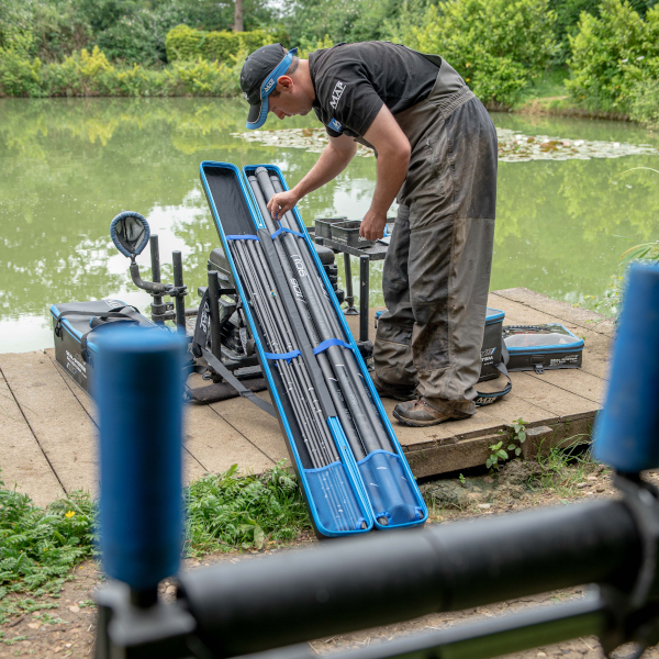 Dedicated hard case protection perfect for your giving your expensive Pole and spare kits that extra level of security travelling to and from the bank. Doing away with the need for plastic storage tubes in your main holdall. These feature a soft inner lining and locater pockets in the base, plus Velcro retaining straps to hold everything securely in place. The case itself is held shut with a strong zip that allows you to open it up lay-flat style. They also include a reinforced carry handle, and comfortable shoulder strap. Â