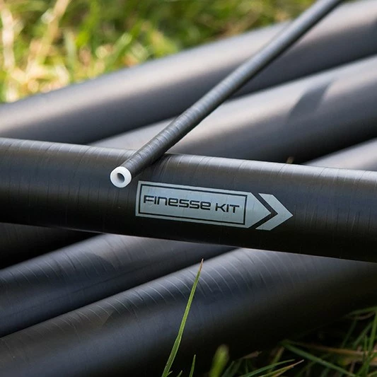 The Matrix MTX V2 finesse kit is a lightweight fast tapered top kit deigned to handle smaller diameter elastics up to a size 10. Weighing in at at mere 38g, its the lightest top kit in the MTX range and is perfect for targeting silver fish.  Each kit comes pre-bushed and fitted with a Matrix Resolve side puller.Â