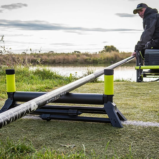 A super stable pole roller from Matrix that packs down into a neat carry case for transport. A well thought out design that provides ultimate protection when you’re shipping back your sections. Featuring sturdy oversized extending legs that fold back neatly underneath, and can be used with the Matrix roller leg extensions. With super soft extruded EVA rollers and foldable uprights topped with EVA caps. The rollers themselves run free and easy with stainless steel bearings built into the mechanism. Â
