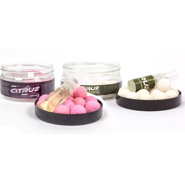 Intense washed out, pink and white pop up boilies from Nash. Rolled using Nashbait’s legendary needle friendly ultra buoyant Airball mix, perfect for chods and stiff rigs. They also include a vial of additional booster spray you can use to add further attraction to your hookbait. Great all year round, but especially effective during the colder month. Especially when paired up with the other products in the Citruz range!