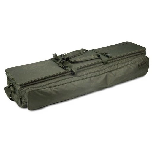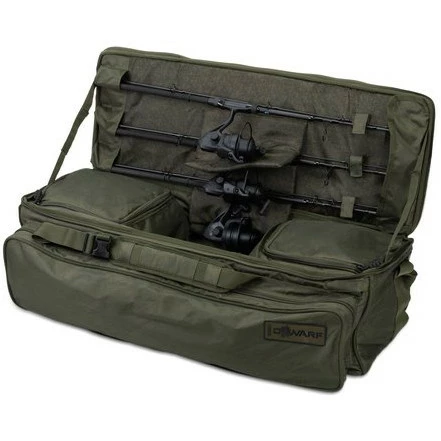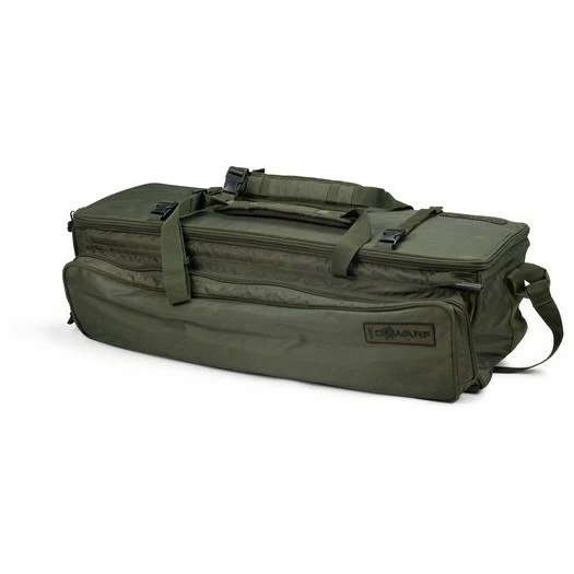 A combined rod holdall, carryall and backpack in one. The Nash Dwarf transporter system gives you storage for three rods, plus an array of other tackle items. All neatly organised in this unique luggage solution. With the rods storing across the lid with Velcro straps, with a recess for the reels to sit in the bag itself. There are two zipped storage compartments either side of the recess that you can fill with bait and tackle. Plus a full length side pocket for banksticks and rod pods etc.Â