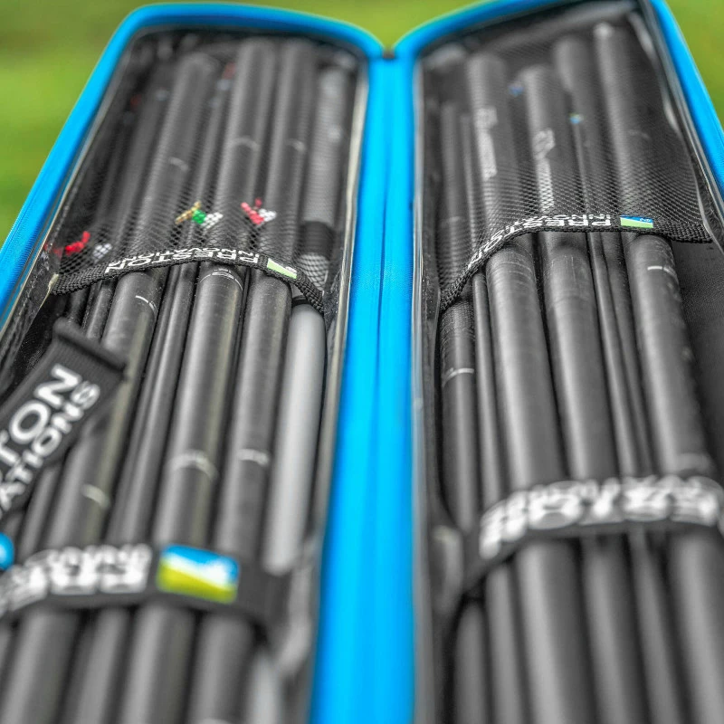 Keep your spares and top kits protected and organised with a hardcase kit safe from Preston. A slim hard case holdall with room to house up to twenty individual top kits. Both traditional two piece and newer style F1 short kits too. With a series of straps and internal webbing keeping everything secure inside.