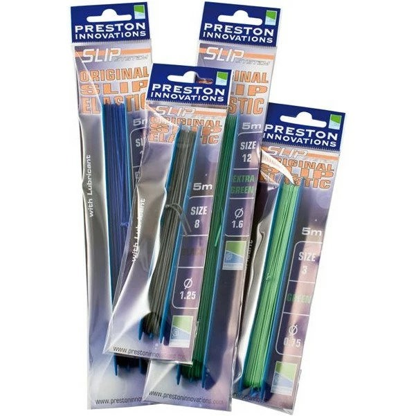 Preston Innovations Original Slip Elastic, the first colour coded elastic on the market and still incredibly popular with anglers to this day. Pre treated with Preston Slip Lubricant and with a proven track record for abrasion resistance and reliability .It is available in 5 metre lengths from ultra fine size 1 up to size 16.
