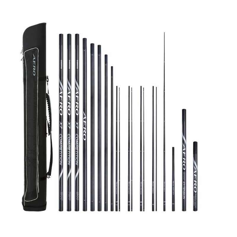 The Shimano Aero X7 Competition Pole 16m pole package, built on the very latest Aero Pro mandrel and compatible with all the top kits and extras. Supplied in a package that’s designed to cover all your commercial carp and silver fishing needs. Manufactured from a more robust high modulus Japanese carbon fibre than the flagship model. They carry many of the same features including Shimano’s Aero Joint, Reinforced Joint, Aero Alignment System on all joints The F1 and Power supplied kits give you ultimate confidence when bagging up on commercial carp. Fitting the match or supermatch top kits gives you a high performance silverfish pole offering exceptional lightness and response.Â