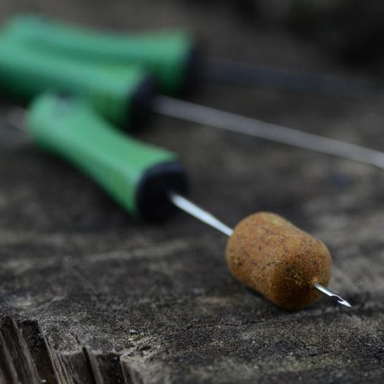 Great for mounting a variety of nuts and tougher baits. These are designed with an easy grip handle a stiff extra strong point and a tiny hooked end.Â