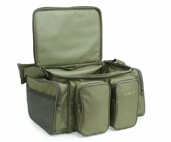 - Compact carryall suitable for tackle storage and transport with a reinforced lid so it can be used as a bivvy table.