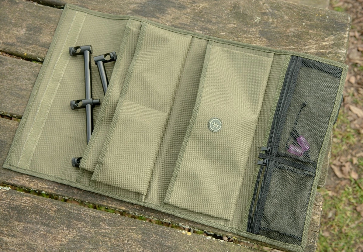 A great idea for organising all your rod rests and metal wear in one simple fold up bag. With room to take up to 8 individual bank sticks, along with enough storage space to separate additional buzz bars, rest heads and alarm batteries etc.   Â