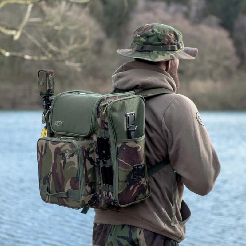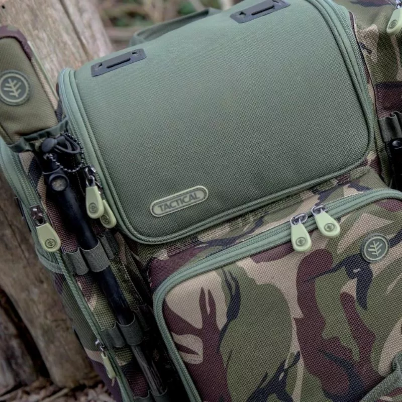 A compact practical backpack manufactured from Wychwood’s high quality hard wearing 1200D camo material. With a generous main compartment accessible via the zip off lid plus 3 other zip up pouches on the front and sides. With bankstick slides on either pocket to slot in your bankware, or even a broken down pod. Plus a number of Velcro attachments on both the lid and side pockets, and additional webbing loop fittings so you can add other items from the range. Â